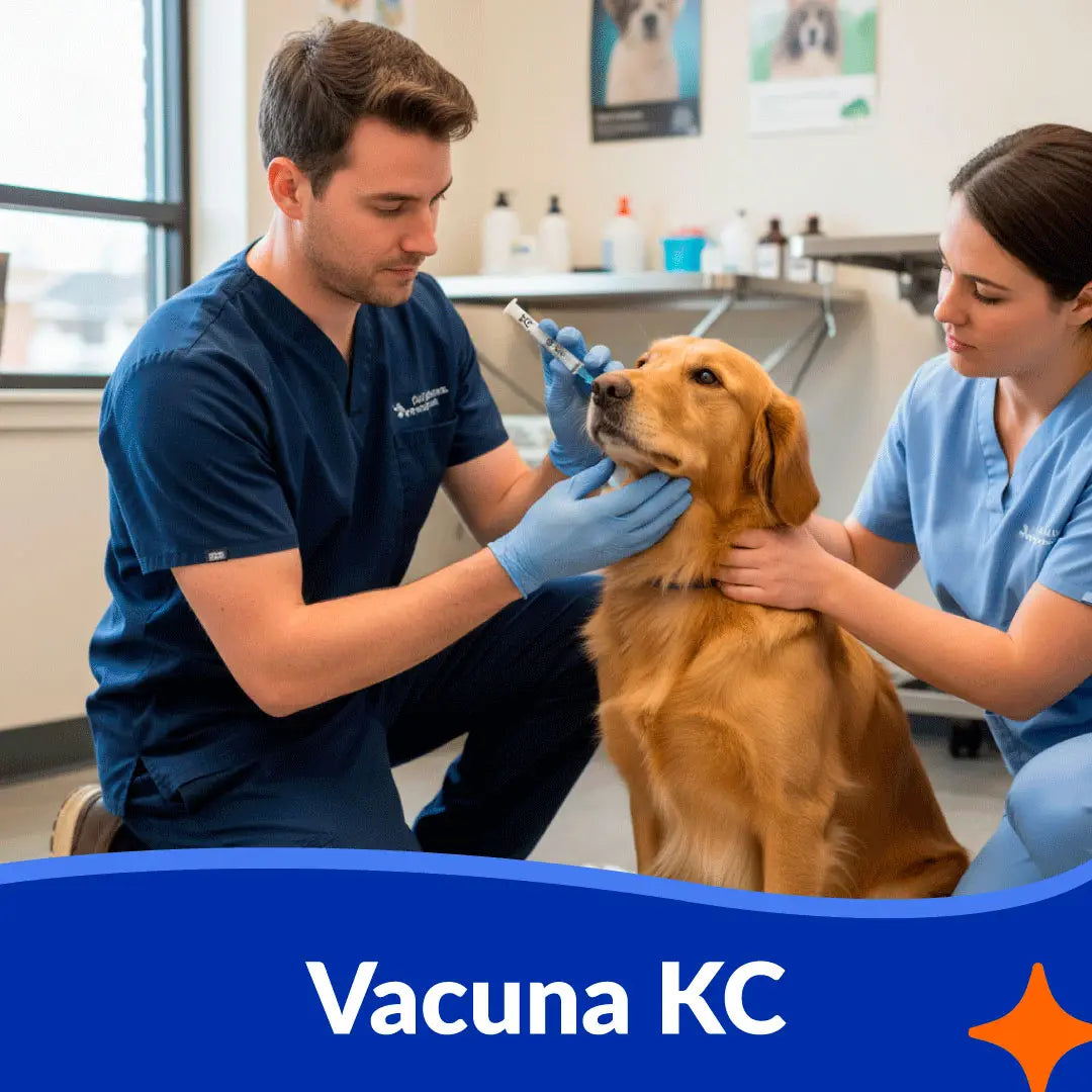 Aplicación de la Vacuna KC, que ayuda a prevenir la traqueobronquitis infecciosa canina (conocida como tos de las perreras), una enfermedad respiratoria contagiosa.